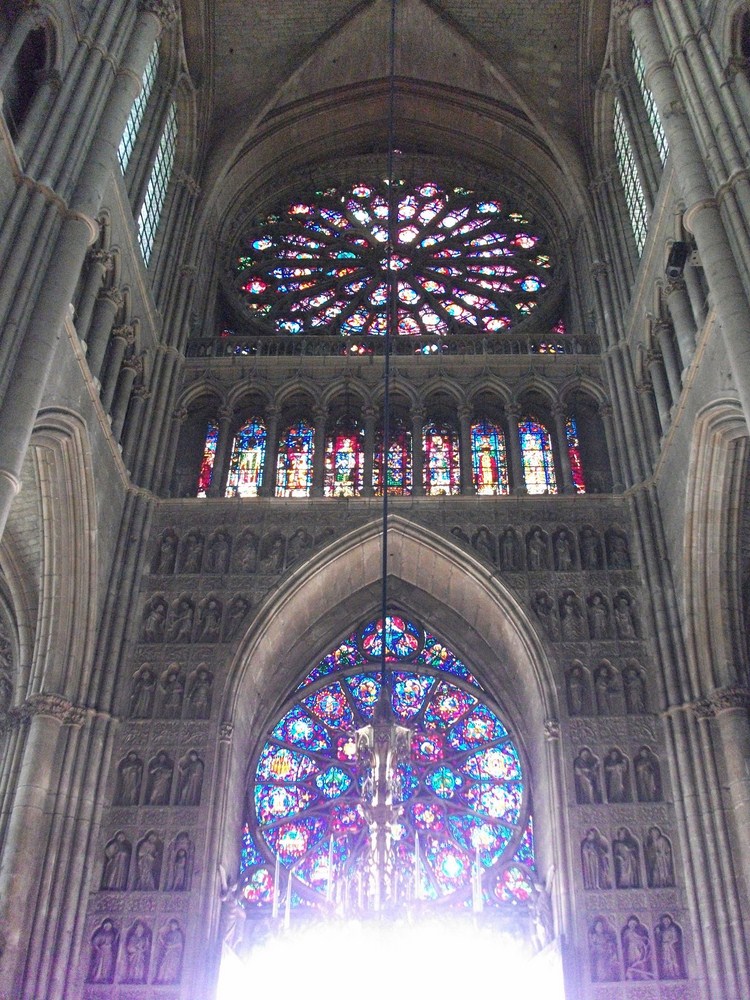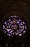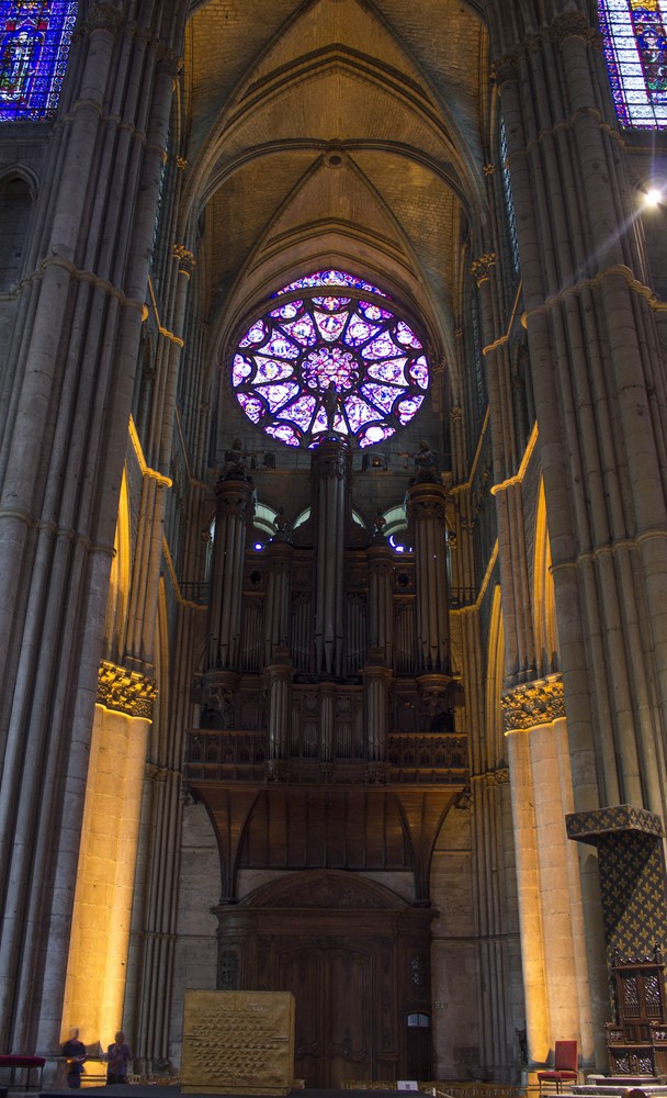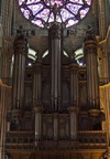 Orgue du XV situé dans le transept nord surplombé par une rose figurant la Création de 1241.