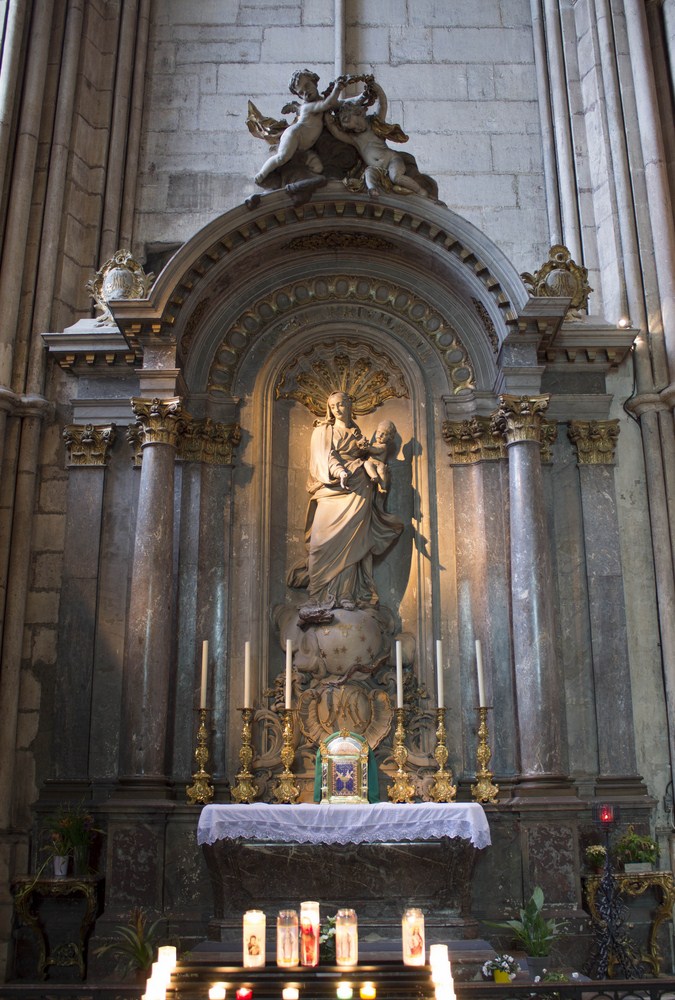 Chapelle du Saint-Sacrement avec son autel et sa statue de l’Immaculée conception de 1741 et 1742.