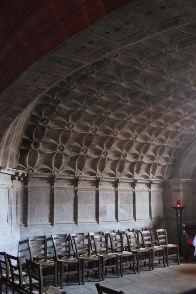 Intérieur de la chapelle du Saint-Sacrement, les voûtes plates clavées sont inspirées des dessins de Sebastiano Serlio, disciple de Vitruve.
