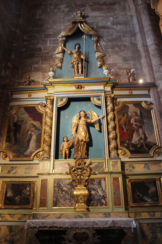 Retable de l’ange gardien de Gabriel Gadaluenc. Les deux grandes toiles latérales proposent à gauche, une Annonciation de 1691 de Joseph Poujol, à droite, Raphaël, lors du voyage de Tobie. Dans la partie supérieure, une statue de Saint-Michel.