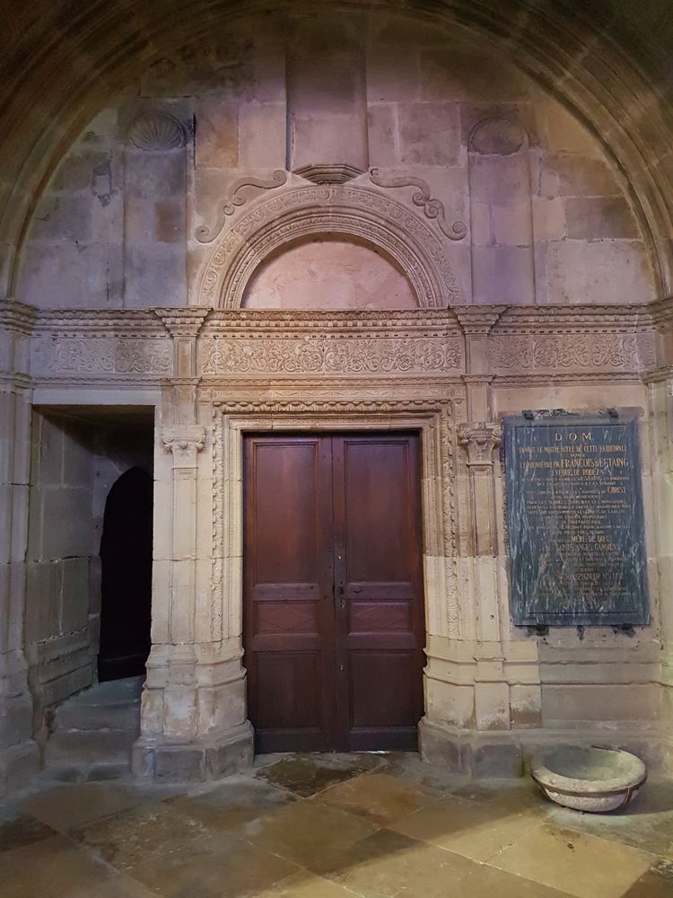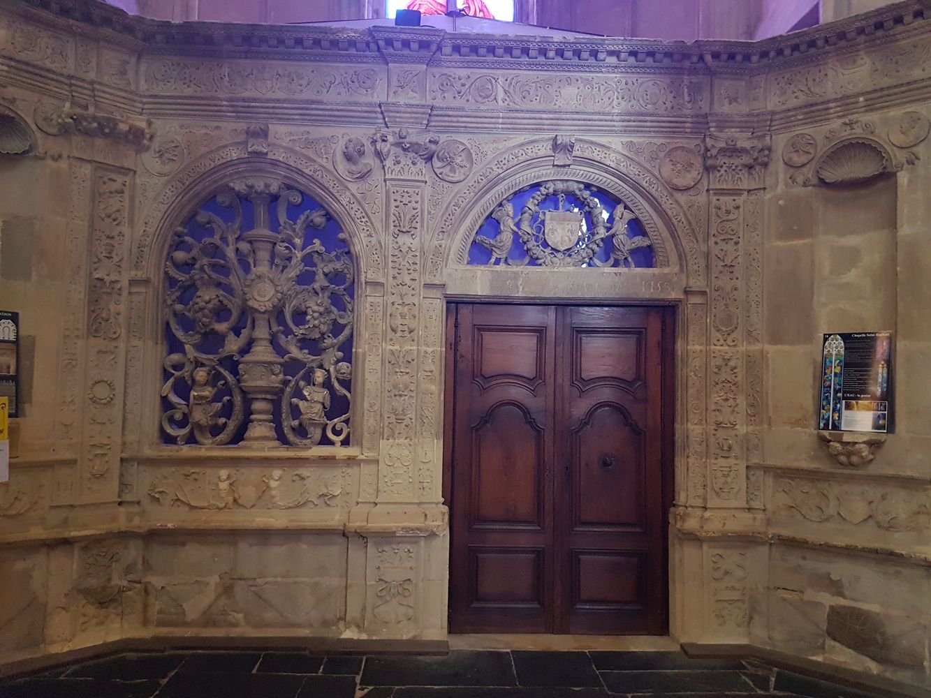Vue sur le transept sud. L’ancien jubé en pierre de 1468 – 1478 sculpté par Viguier à été placé devant le portail en 1872.