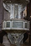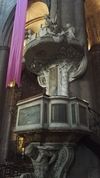 Chaire néo baroque XIX en plâtre figurant le triomphe de la foi.