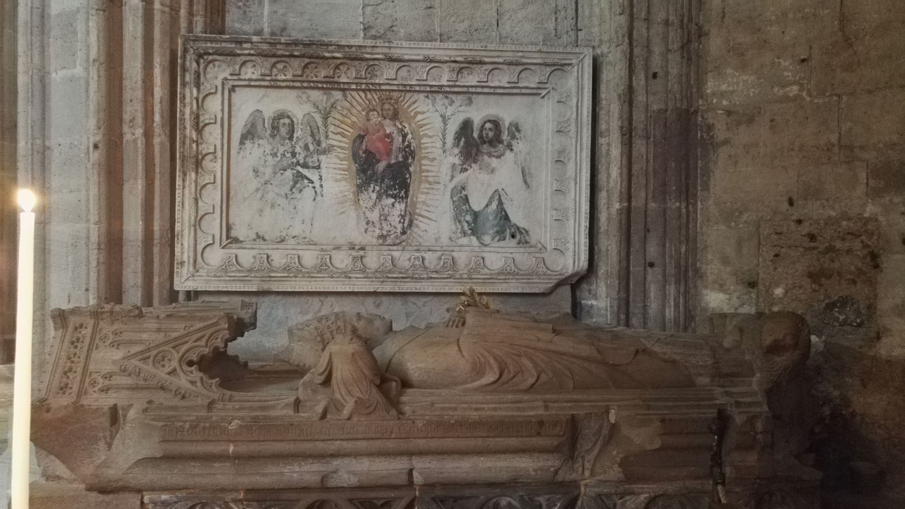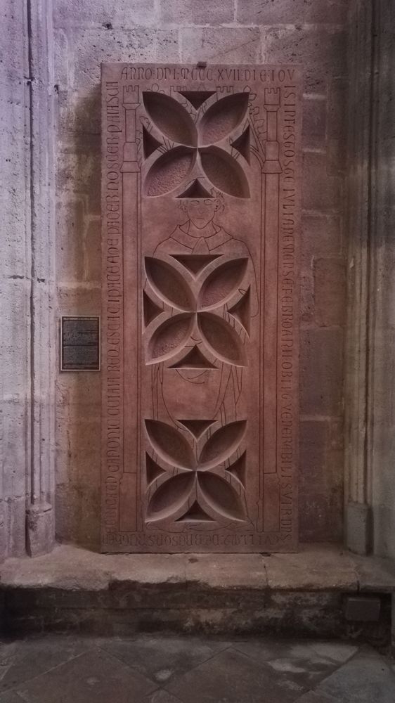 Copie de 2001 de la dalle funéraire de Guilhem de Breson, plus ancienne pierre tombale de la cathédrale.