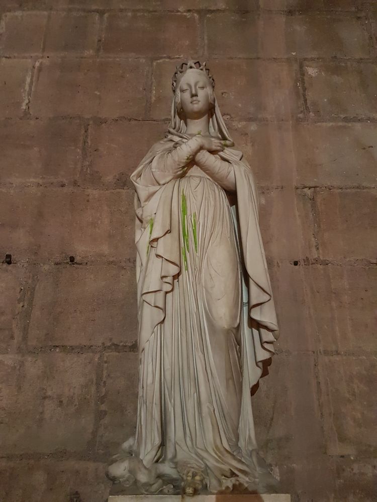 Sculpture de dragon endommagée dans le bras nord du transept.