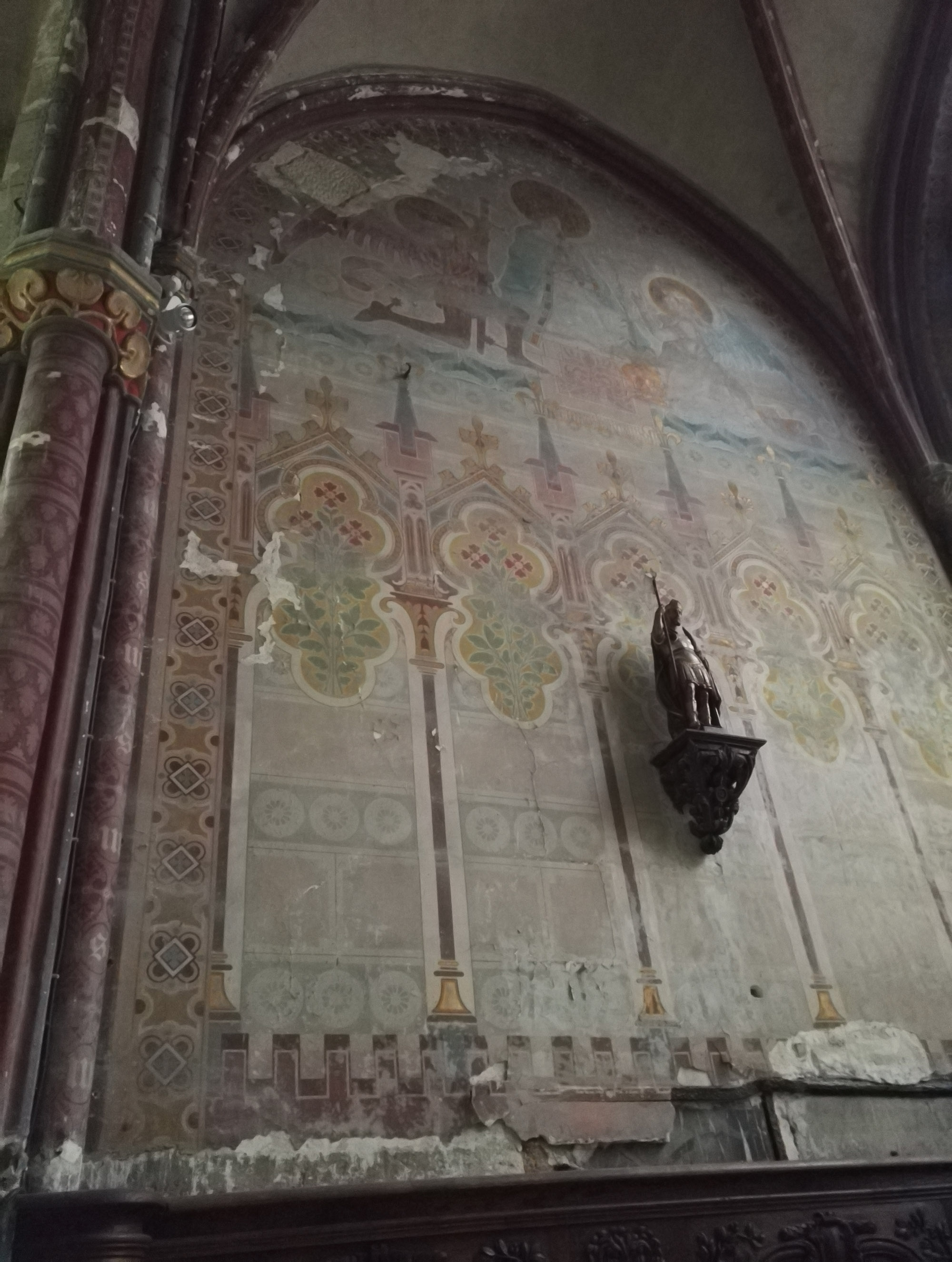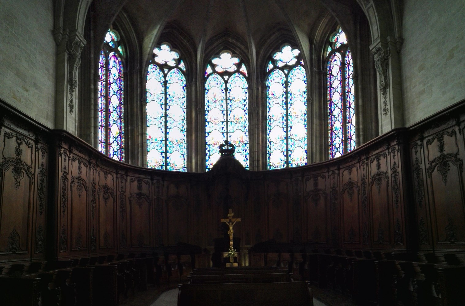 abside፧ orientale pourvue de stalles de 1758. Les vitraux sont de 1927 – 1934, fabriqués par l’atelier Nancéen Jean-Jacques Gruber en remplacement de ceux soufflés par les bombardements. Le bas-relief qui était probablement un élément de la cathédrale était exposé dans l’abside.