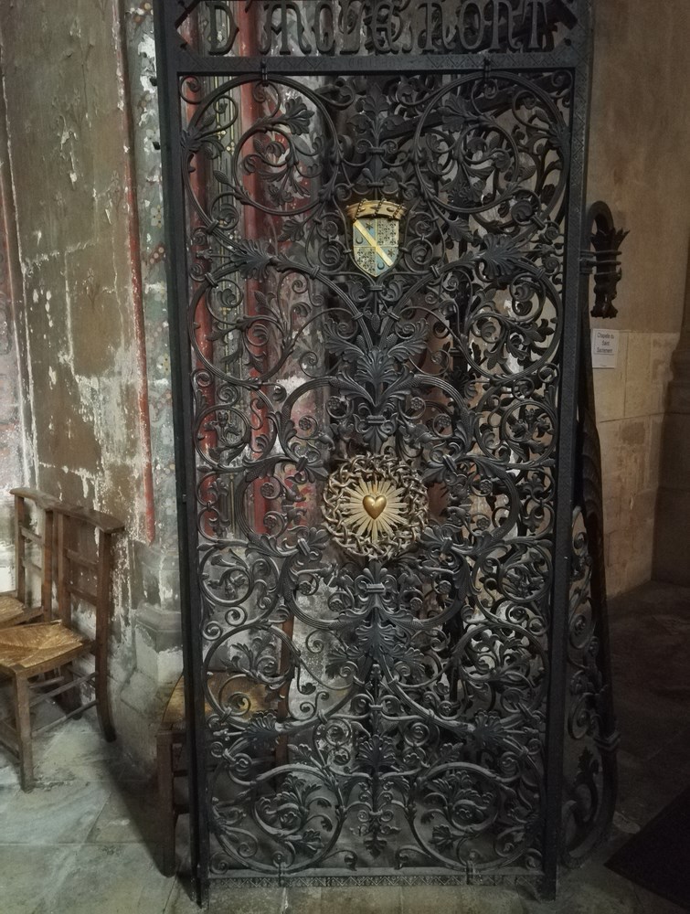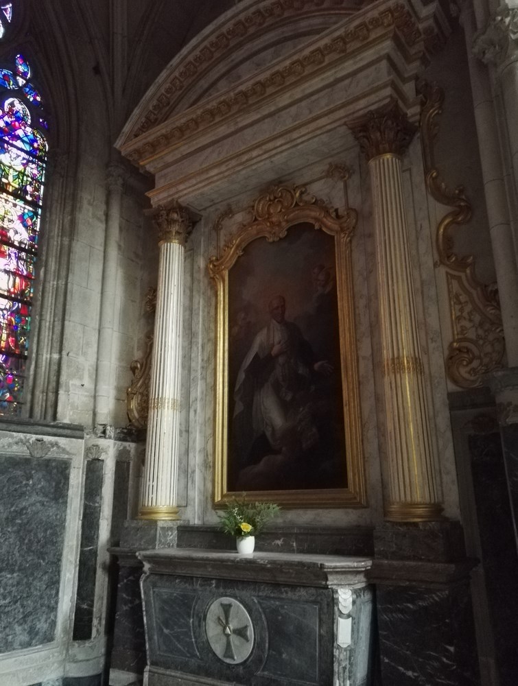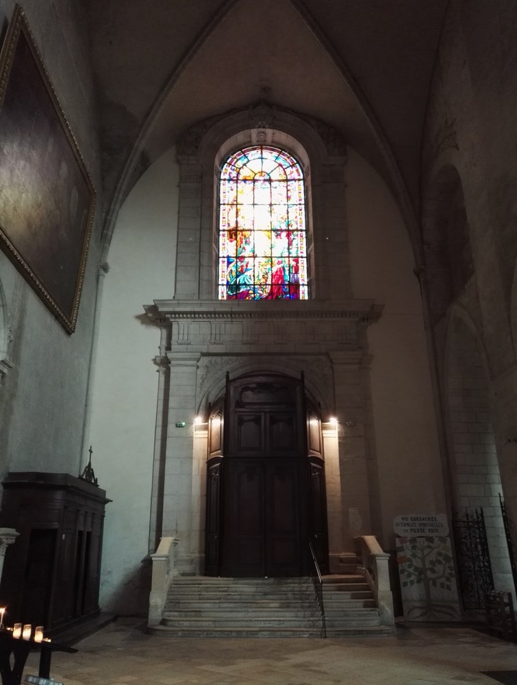 Nom : Chapelle saint Bernard, avec son autel en marbre du XVIII et un tableau de saint Vincent de Paul. Au mur, Le Mariage mystique de sainte-Catherine d’après Le Corrège. Le vitrail montre saint Bernard à Verdun lors de la dédicace de la cathédrale en 1147.
