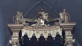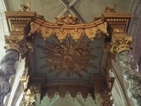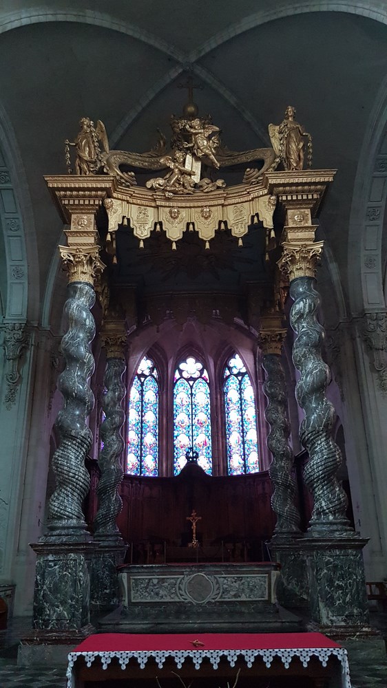 Le baldaquin፧ marbre et bois de 1760 surmonte le maître-autel et est situé au croisement du transept oriental. Il est une réplique miniature de celui de la Basilique Saint-Pierre de Rome.