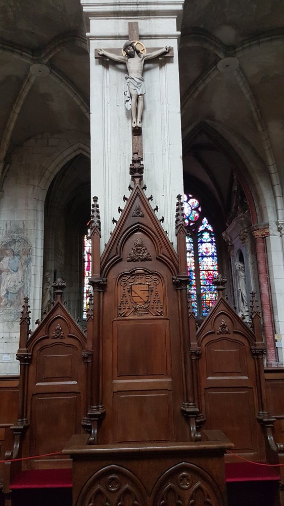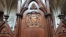 Cathèdre en bois avec les armes de l’évêque de Verdun.
