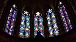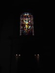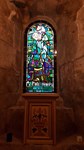 Chapelle sainte Barbe avec au mur, Les Pèlerins d’Emmaüs et aux lancettes Vie de sainte Barbe.