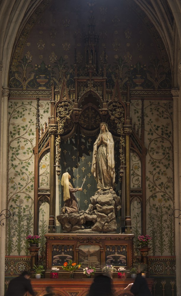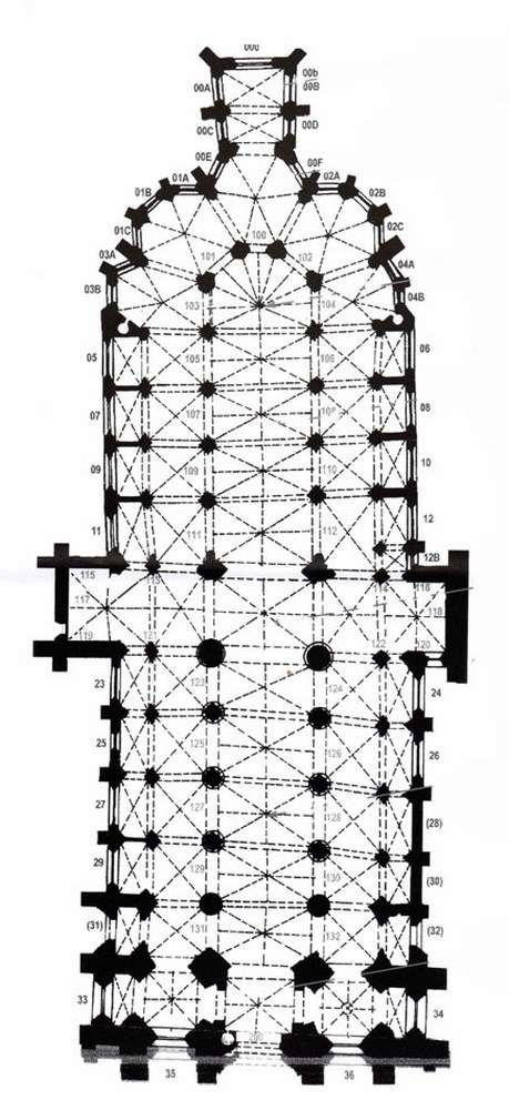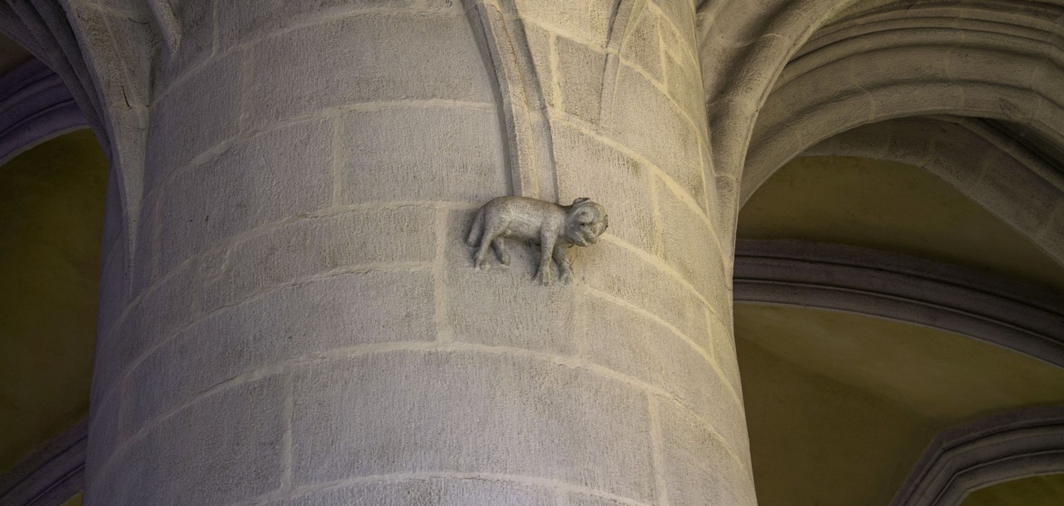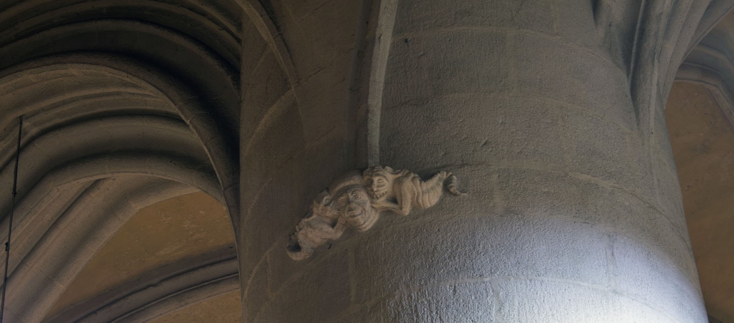 ◆ Une des chapelle nord de la nef est appelée la Chapelle des Trois gouttes de sang. Elle immortalise l’événement qui aurait eu lieu dans à cet endroit. Un homme à qui un pèlerin avait confié ses biens, nia avoir reçu quoique ce soit lorsque de retour ce même pèlerin lui demanda de lui restituer ce qui lui appartenait. L’évêque prit connaissance de l’affaire et le parjure dû jurer devant la croix de l’autel qu’il disait la vérité, à cet instant trois gouttes de sang ruisseleraient du crucifix pour tomber sur la nappe. En souvenir du miracle, on conserva la tête du Christ ainsi que la nappe dans un reliquaire exposé sur la présente chapelle.