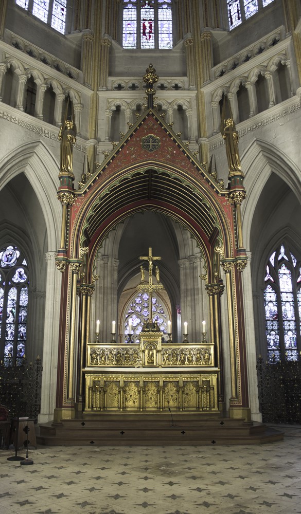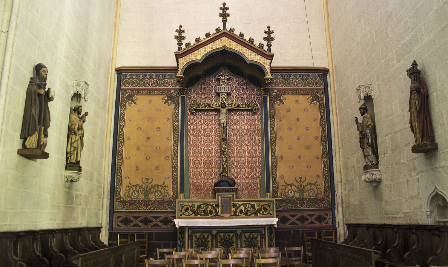 Chœur vu depuis la nef, il oblique légèrement sur la gauche, peut-être une symbolique en rapport avec l’inclinaison de la tête du Christ sur la croix.