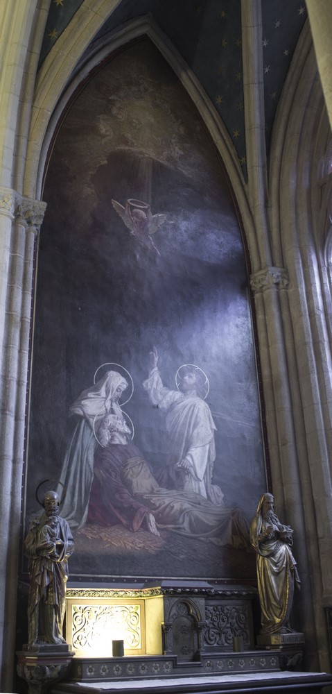 Autel nord du transept gardé par saint Antoine, saint Guénolé, saint Conogan et Sainte Barbe.