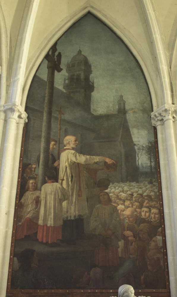 Nom : Chapelle de Michel le Nobletz, le Nobletz présentant une tête de mort à la foule Quimperroise.