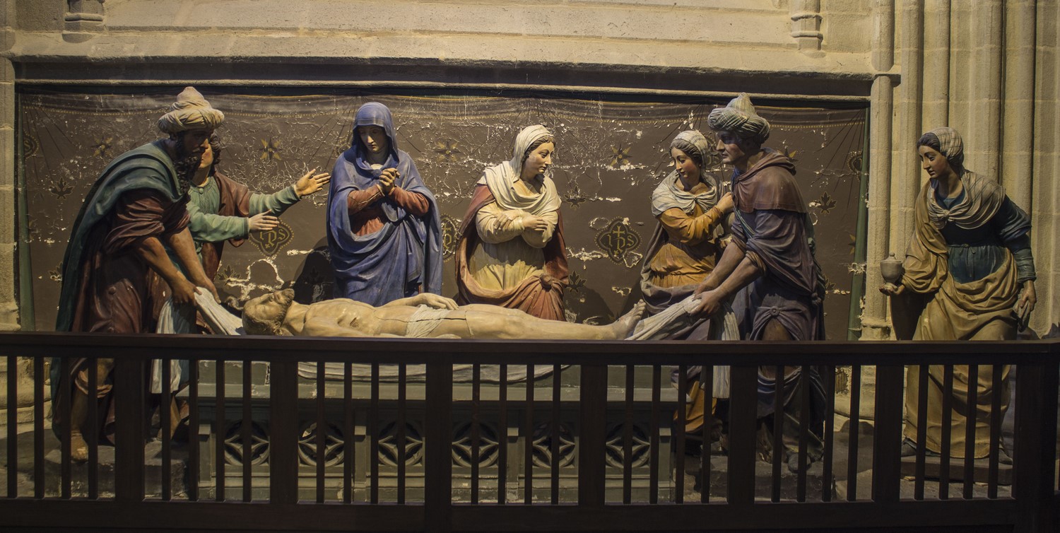 ◆ Une Mise au tombeau réalisée par Désiré Froc-Robert en 1868 à été inspirée en grande partie du sépulcre de la crypte de la Cathédrale saint-Étienne de Bourges. Les personnages de gauche à droite : Joseph d’Arimathie, Saint Jean l’Evangéliste, Marie mère de Jésus, Marie-Madeleine, Marie Salomé, Marie mère de Jean et Nicomède.