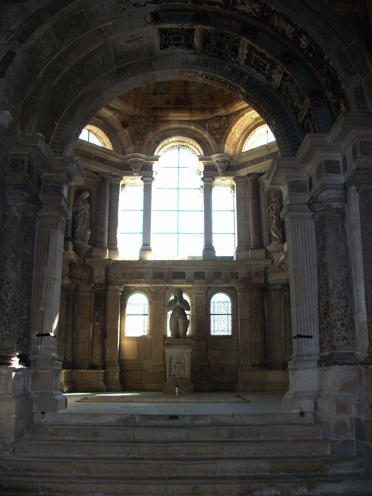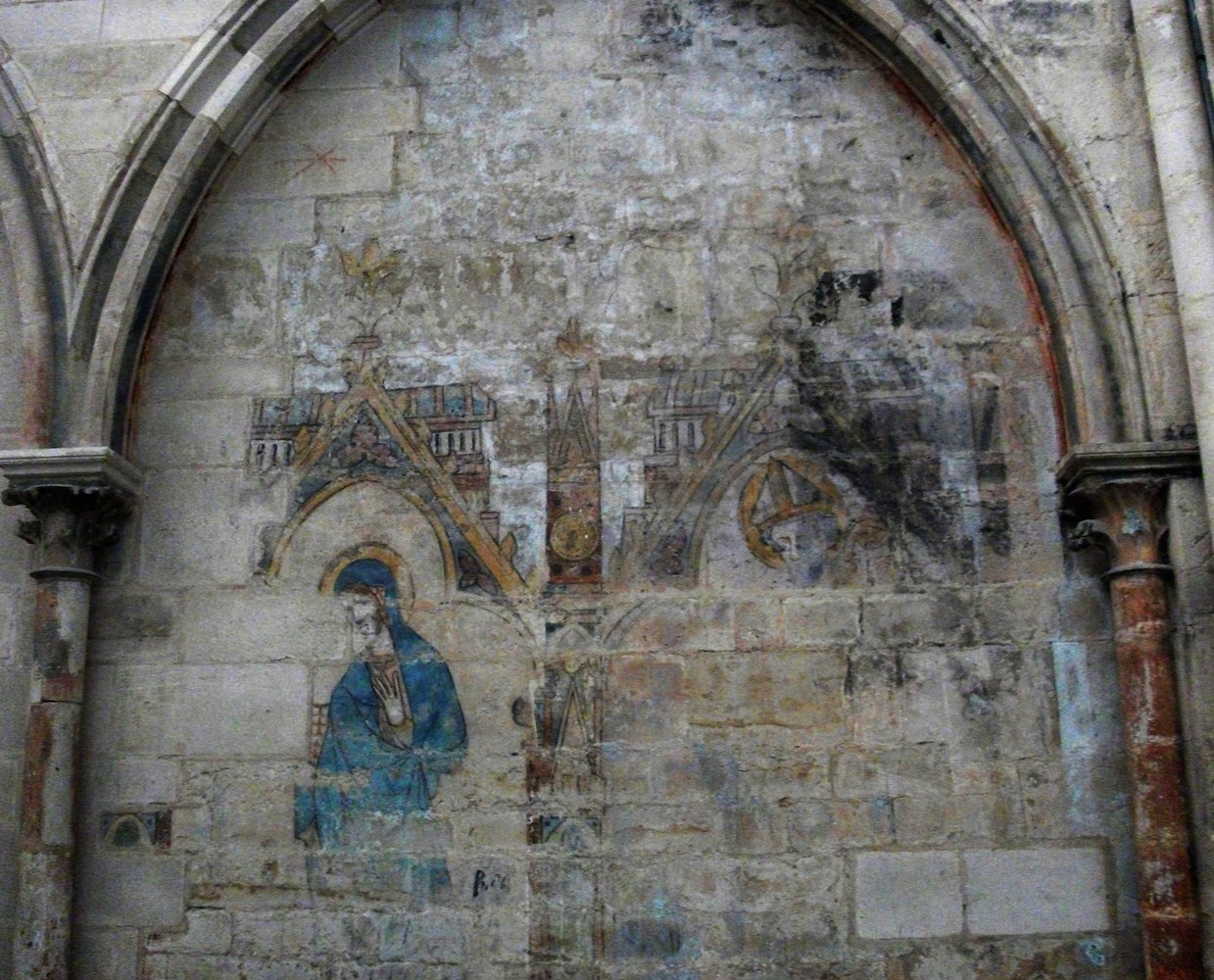 ► On remarque en outre que les extrémités du transept sont fenêtrés au lieu d’être pourvues de rosaces, de plus le plafond de la Chapelle des Évêques qui est en voûte plate à caissons, n’est maintenu que par des arcs surbaissés.