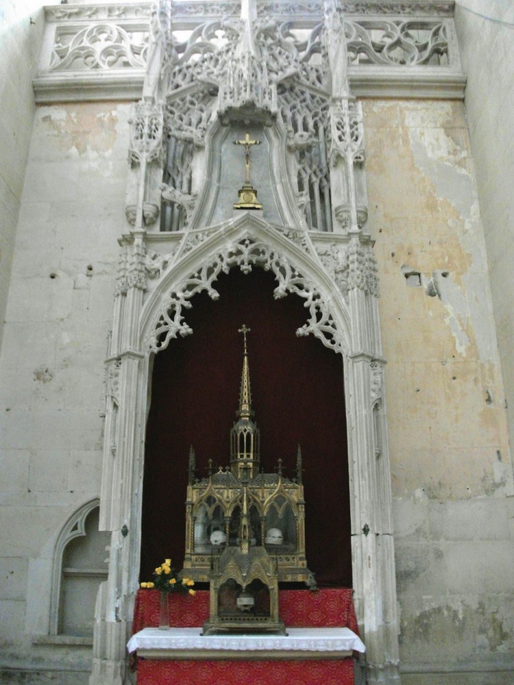 Reliquaires étant de haut en bas et de gauche à droite : Saint-Aprône (VI) puis Saint Gérard (X) et Saint Mansuy (IV).