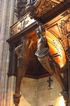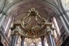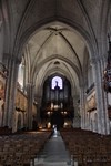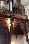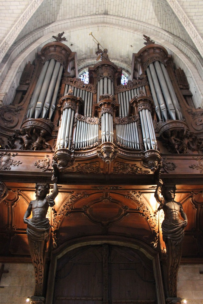Nef vue du chœur avec détails de l’orgue accompagné de ses atlantes soutenant le buffet.