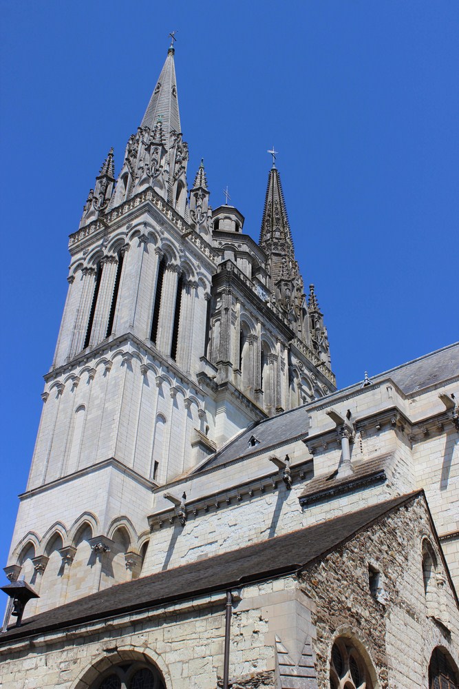 ► Située au sommet du rocher de schiste sur lequel la ville a pris naissance, la cathédrale possède trois grandes voûtes bombées achevée en 1149 et qui sont la marque distinctive principale du gothique angevin. Ces voûtes demeurent les premières représentantes de ce style.