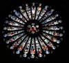2. Rosace du croisillon sud montrant un christ en majesté accompagné du tétramorphe. L’ensemble est entouré des vieillards de l’apocalypse, d’anges musiciens et des signes zodiacaux.