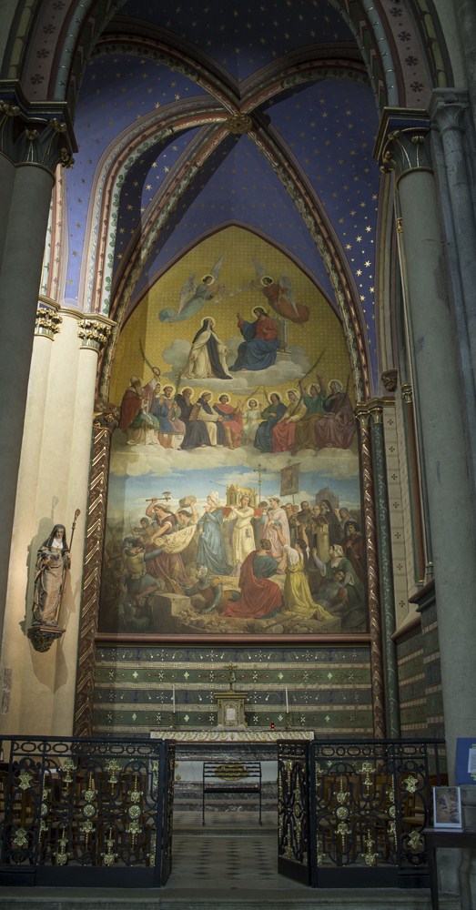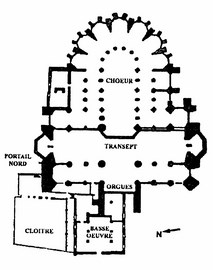 ⚐ 1272 : Le chœur, l’abside፧, les chapelles rayonnantes et le bas-côté oriental du transept sont achevés et on mème des vêpres.