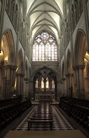 1279 : La cathédrale est achevée dans le style sobre, anglo-normand, les tours seront élevées ultérieurement.