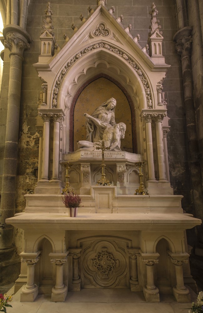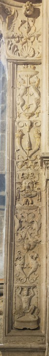 ► Au bras nord du transept est encastré le tombeau, qu’on peut qualifier de mausolée, de Thomas James, exécuté par les soins de Jean Juste, sculpteur florentin habitué de la France et probablement proche élève du grand sculpteur Michel Colombe. L’ouvrage, daté de 1507, est typiquement représentatif de l’art renaissance qui commence à fleurir en France. Anciennement pourvu de divers statues dont celle de l’évêque, 1793 et le passage des révolutionnaire faisant, il ne reste aujourd’hui plus que l’encadrement et son architecture.