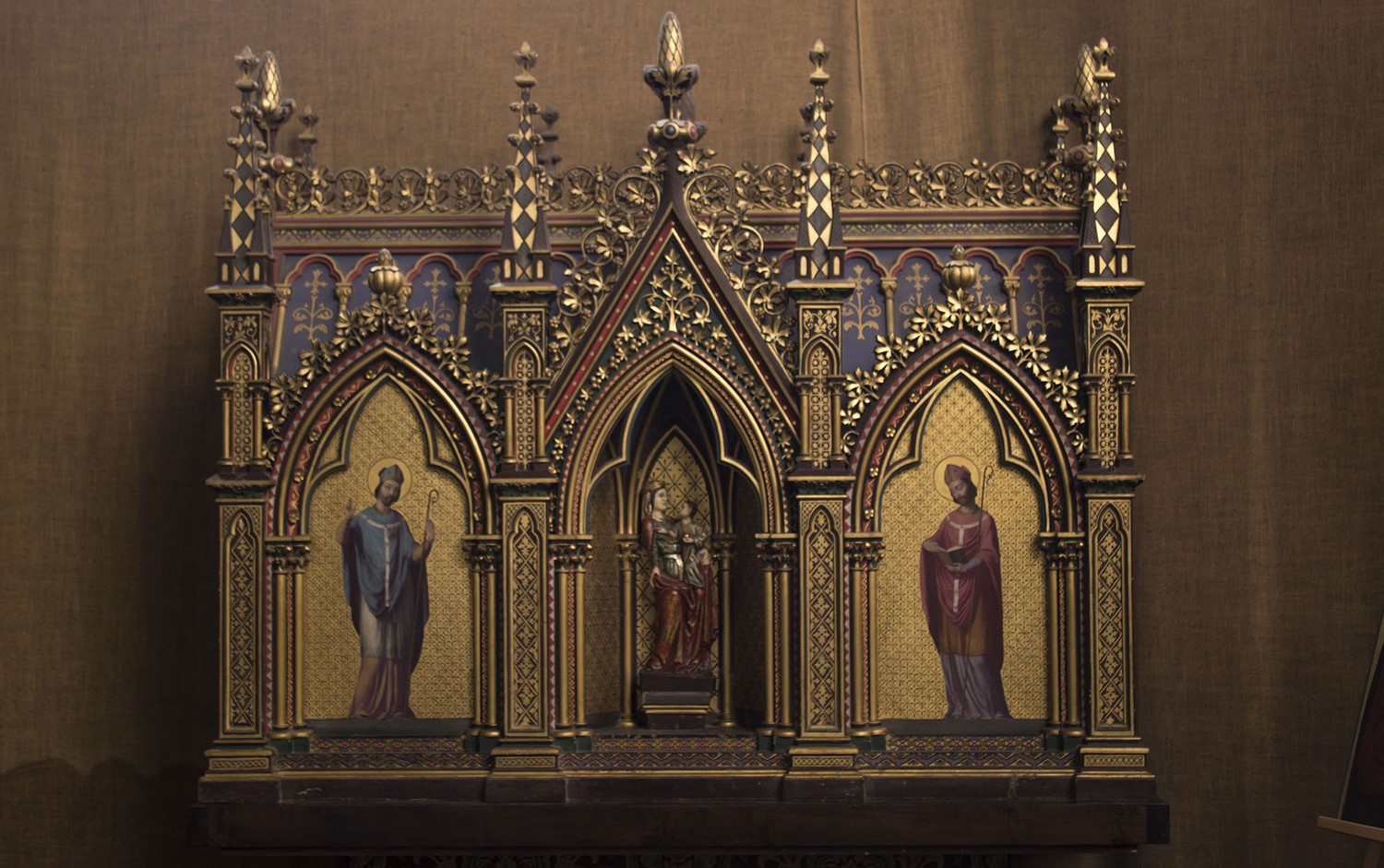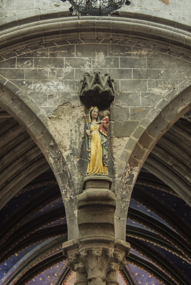 Châsse à la statue de la vierge aux cotés de saint Samson et saint Magloire.