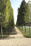 Axe principal vu depuis le château avec au premier plan derrière les deux sphinges, les Dentelles de Buis, la Source, puis la Voie au second et au fond, les Marches.