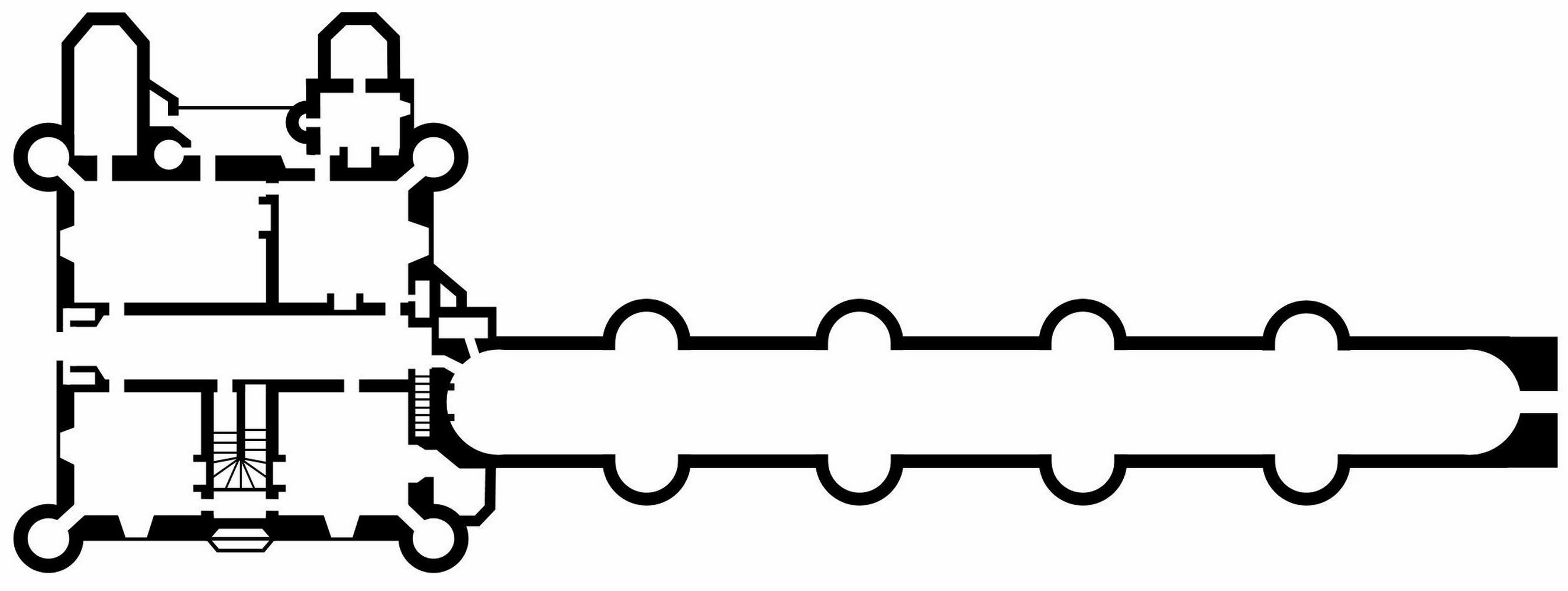 4. Au plafond, voûtes d’ogives aux clefs décalées.