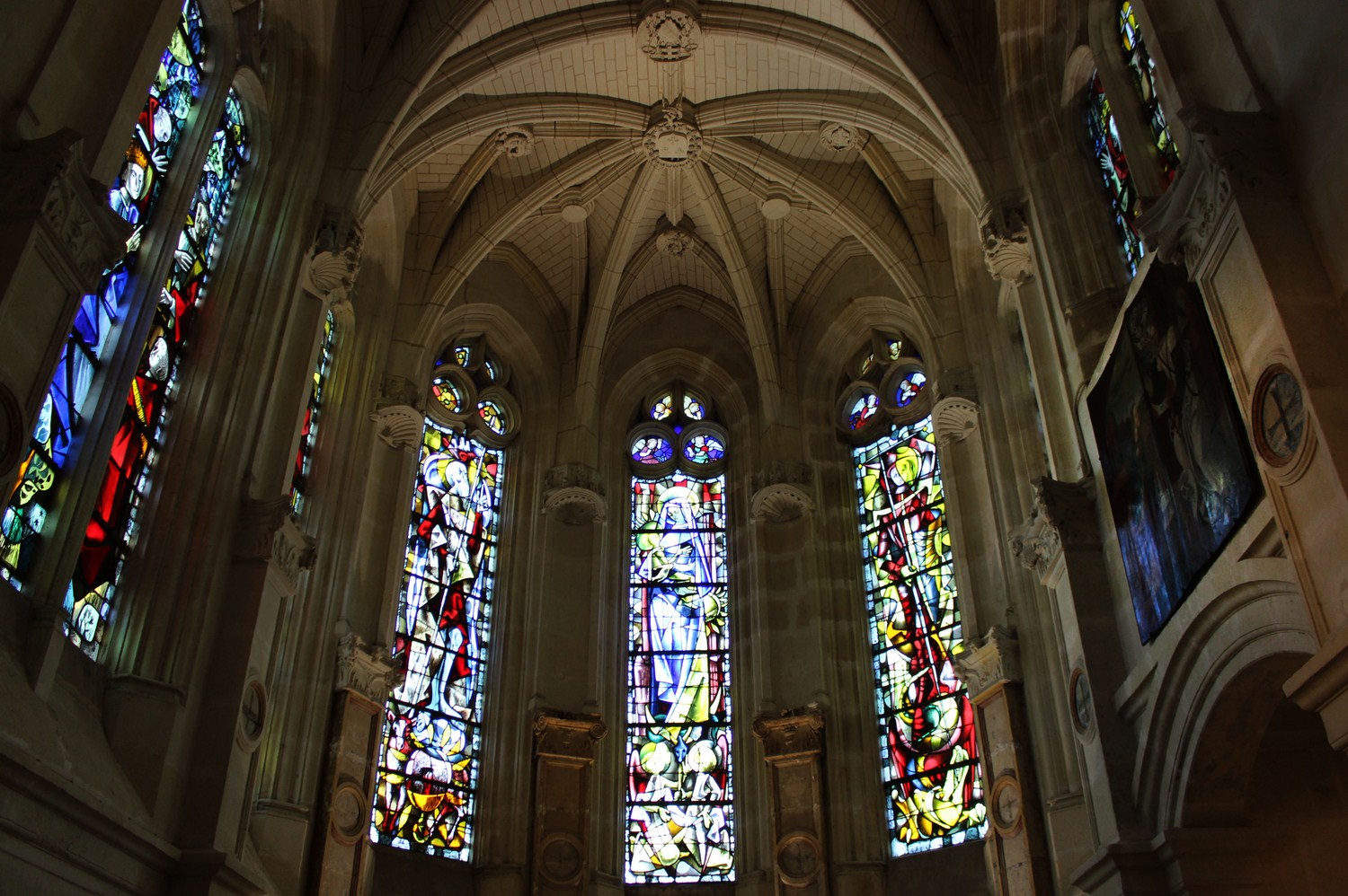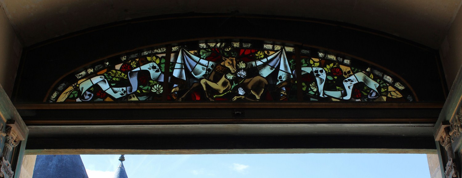 1. Vitrail du vestibule représentant le cerf de Saint-Hubert.