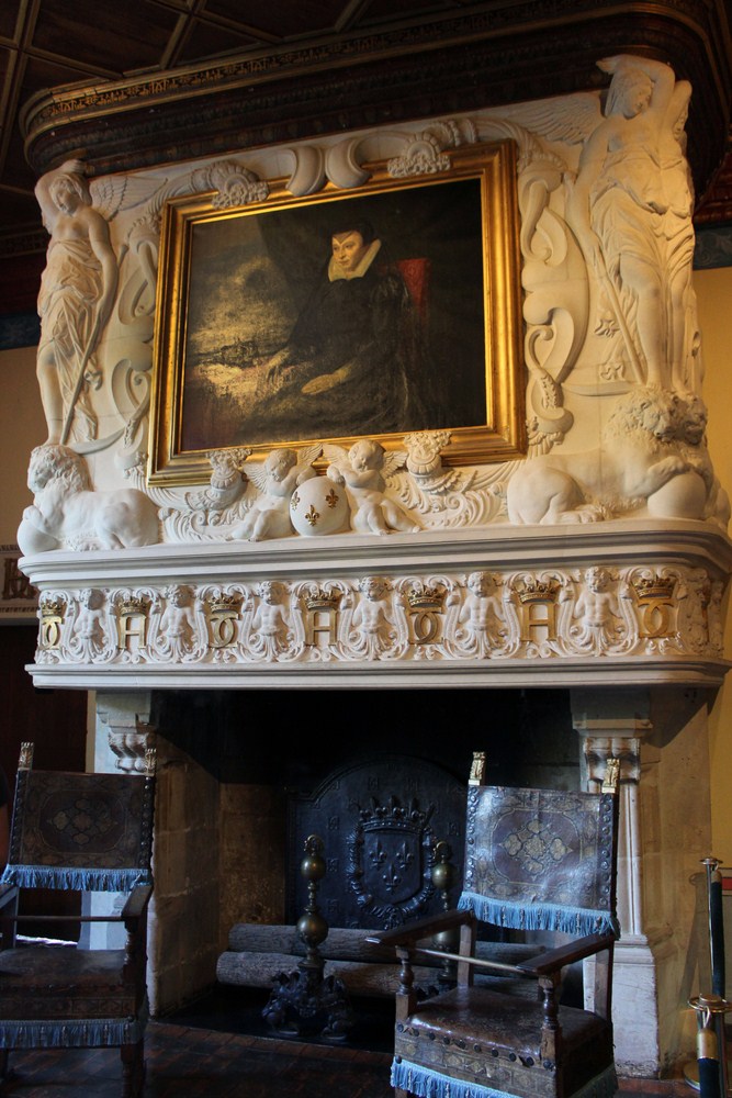 Cheminée dans la Chambre de Diane de Poitiers orné d’un Portrait de Catherine de Médicis de Piat Sauvage.