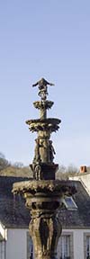 ◆ La fontaine à été réalisée en 1691 par le sculpteur Jacques Lespagnol, on y voit à sa cime Dieu le Père bénir son fils, que saint Jean-Baptiste baptise dans une vasque inférieure.