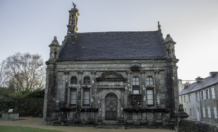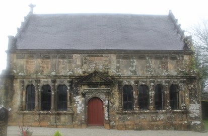 ◆ La chapelle funéraire dans un style renaissance bretonne, aussi appelée Oratoire du Sacre, située milieu du cimetière possède des sablières sculptées de scènes diverses, la plupart mythologiques (comme Héraclès étranglant le lion de Némée), historiques ou encore allégoriques.