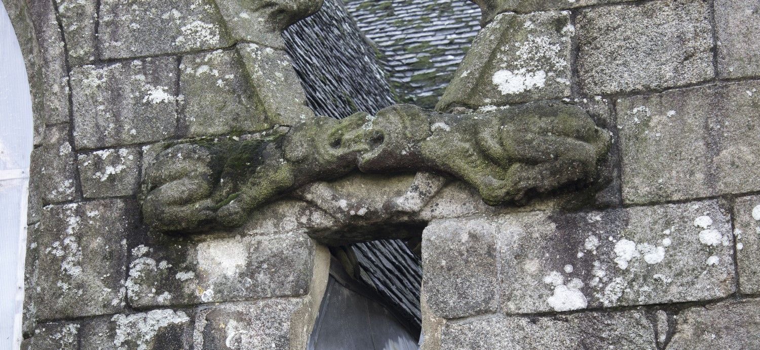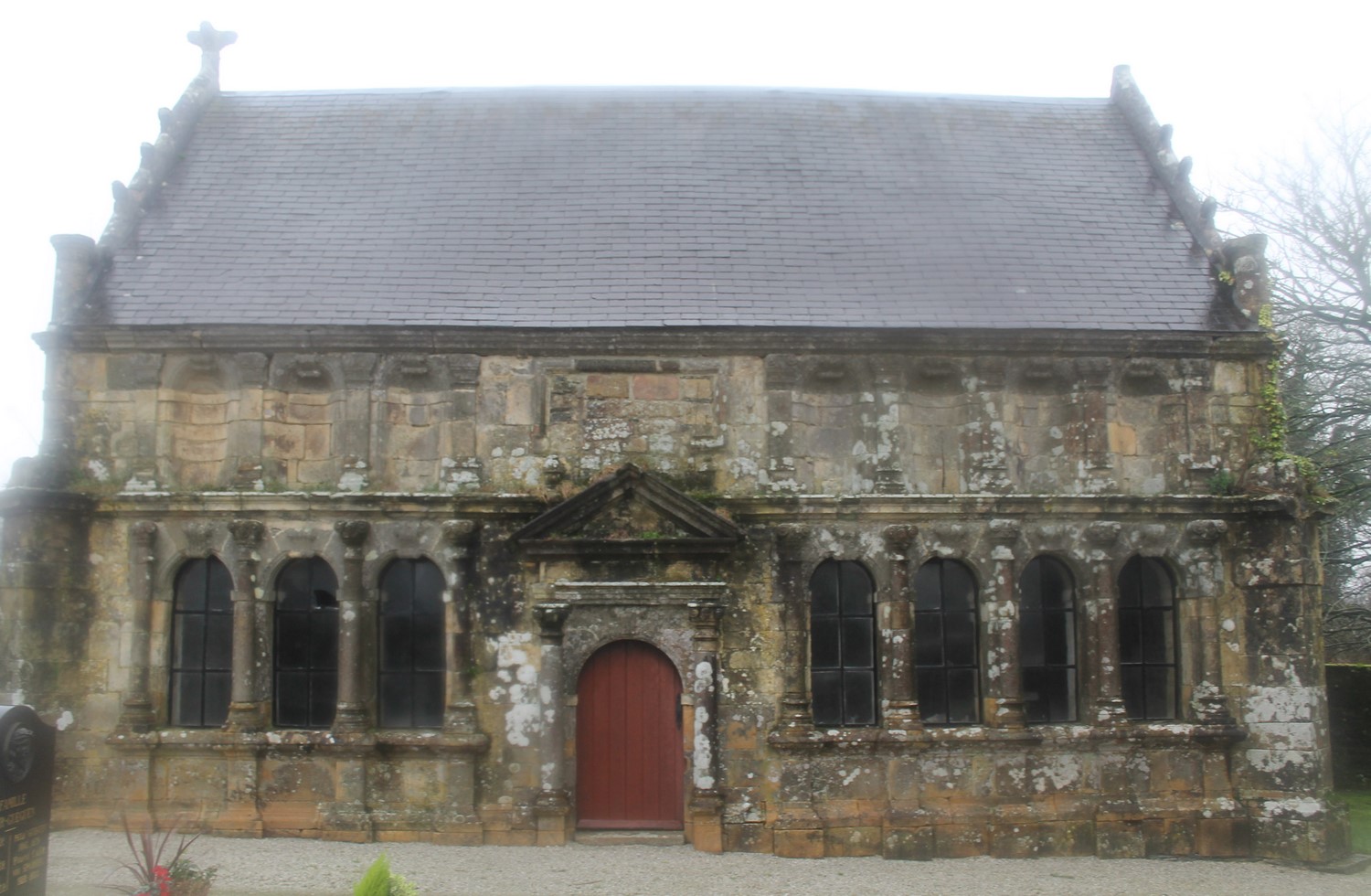 Chapelle funéraire de 1577 ornée de sablières en bois sculptées.