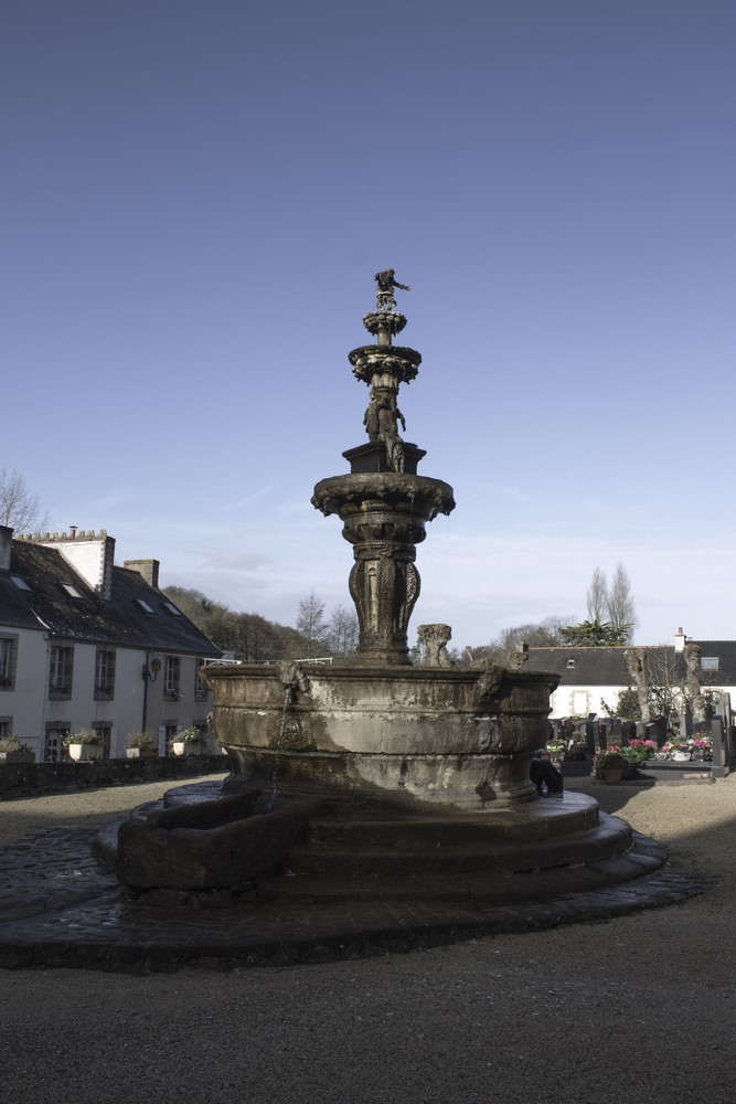 Fontaine en pierre de Kersenton de l’enclos sculptée en 1691 par Jacques Lespaignol.