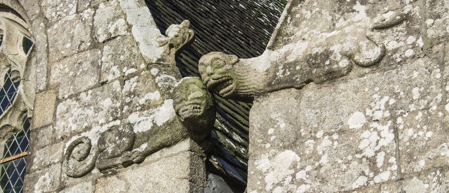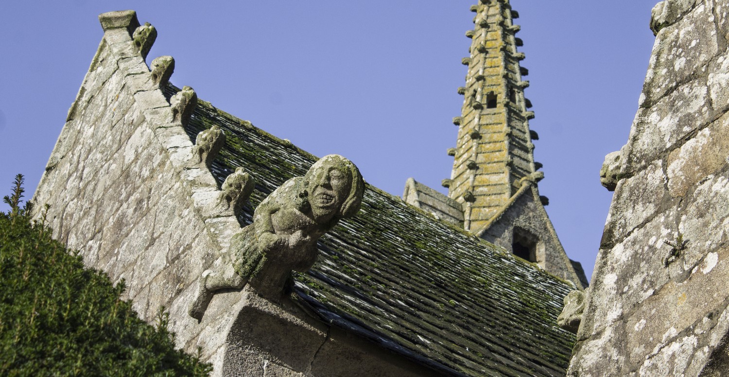 ◆ Le porche de l’église Saint-Milliau daté de 1606 abrite les douze statue d’Apôtres ainsi que des frises sculptées d’imageries païennes.