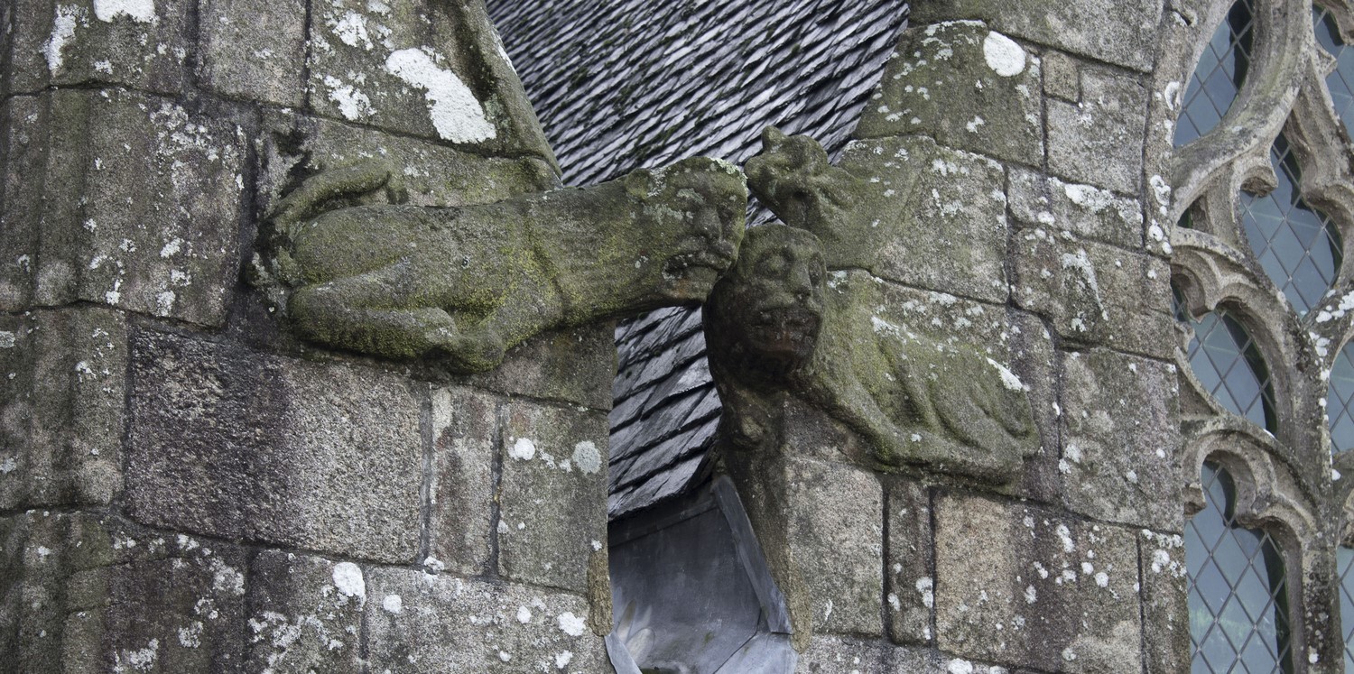 ► L’Église saint Suliau élevée au XVI est particulièrement riche en sculptures et gargouilles parsemant tout l’édifice, en particulier des sirènes et dragons. Une Mélusine caché à gauche de la porte de triomphe est représenté cueillant le fruit de l’arbre de vie à deux feuilles, un symbole indique aussi l’emplacement du foie de Mélusine, les côtes de son flanc gauche sont aussi mis en évidence. Le chevet est en parti décoré d’une frise sculptée de diverse figures aux symboles alchimiques.