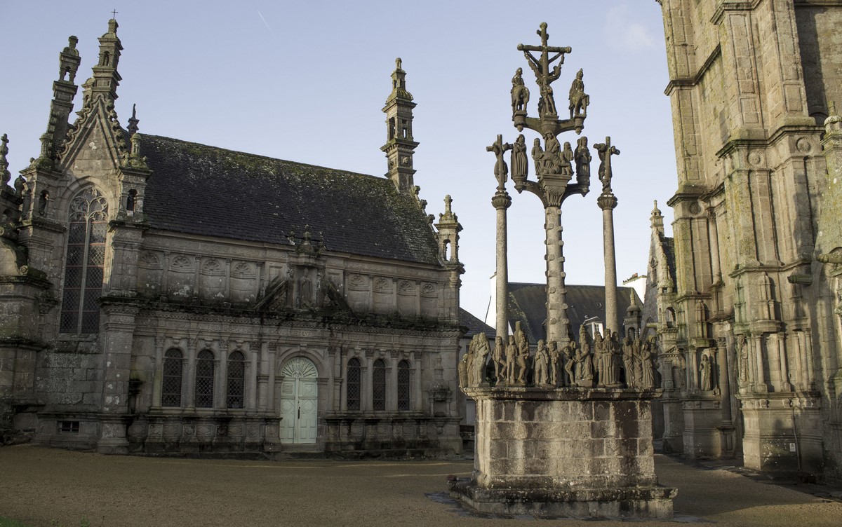 ► En Basse-Bretagne, à partir du XVI, il était commun de clôturer la place de l’église d’une commune par un placître englobant à la fois l’édifice, un cimetière et souvent un calvaire, un ossuaire, une chapelle reliquaire ou encore une fontaine. L’entrée du mur d’enceinte est généralement aménagé en arc de triomphe. Cette volonté d’ouvrager les lieux religieux est en grande partie un moyen de lutter contre l’arrivée du protestantisme (prônant la sobriété) qui possédait quelques églises à l’est de la région mais n’a jamais pu s’installer durablement en Basse-Bretagne. Ce nouvel élan de production architectural, accéléré aussi par les missions catholiques de Michel Le Nobletz puis de Julien Maunoir, a favorisé la mise en avant des saints locaux, reconnus ou non par l’Église, dont beaucoup sont issus d’anciennes divinités celtiques ou d’un animisme paganisant christianisé.