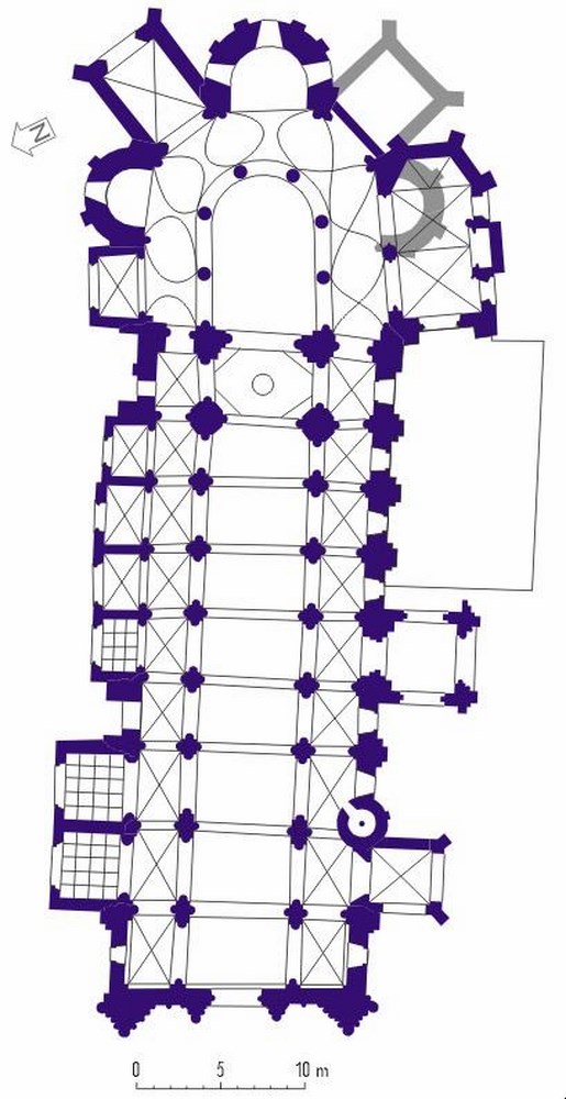 Le chevet on l’on peut voir les nombreuses chapelles qui furent ajoutées au XV – XVI.