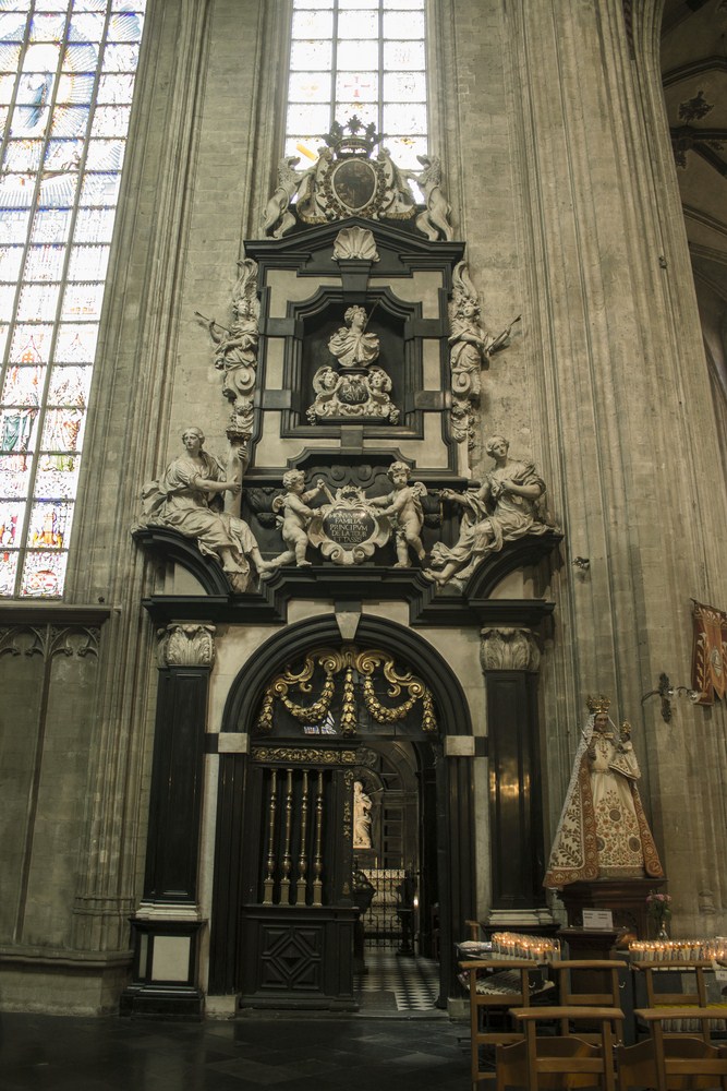 ◆ La légende raconte que Béatrice Soetkens, apporta la statue de nuit, remontant d’Anvers vers Bruxelles sur une barque. On raconte encore que le sacristain qui voulut l’en empêcher fut changé en statue de sel. On trouve des évocations de cet épisode un peu partout dans l’église, notamment dans une sculpture du XVII.