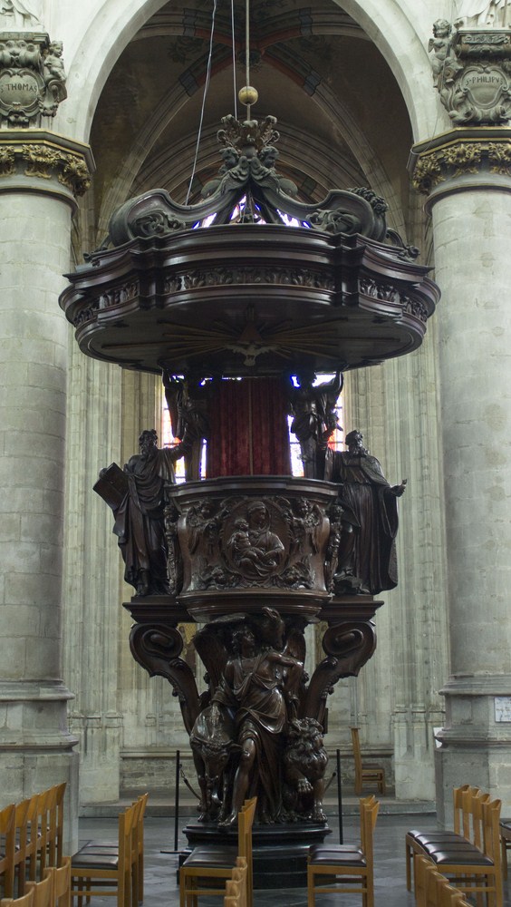 Chaire de vérité baroque sculptée par Marc de Vos en 1697.