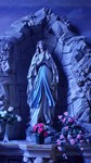 Chapelle à l’ambiance bleutée présentant une statue non identifiée.