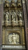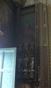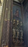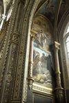 Transept sud. Sur les cotés, trois statues d’apôtres sont surmontés d’une part par une fresque de saint-Jean, d’autre part par une fresque de saint-Marc.
