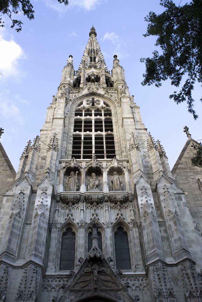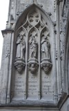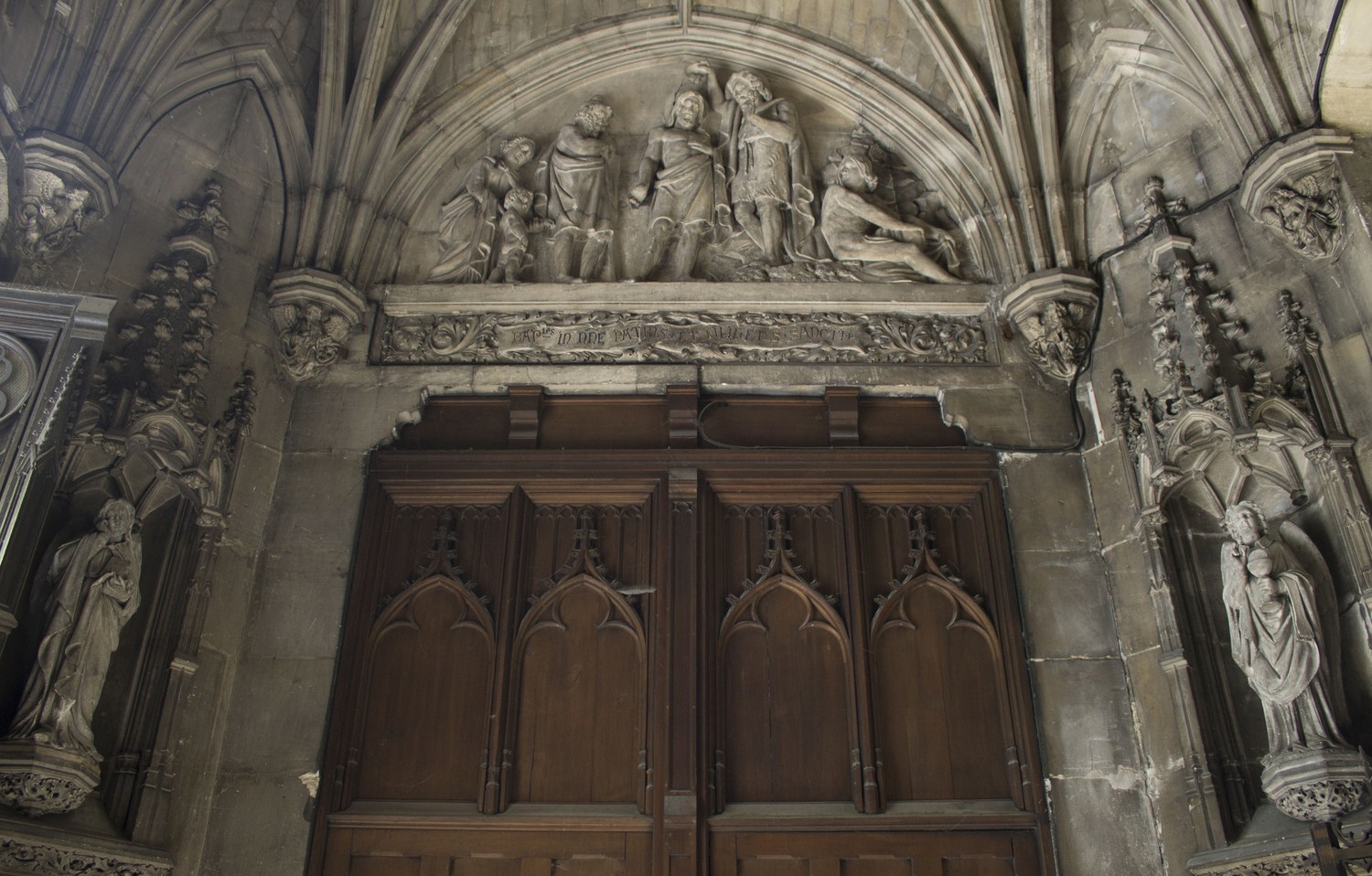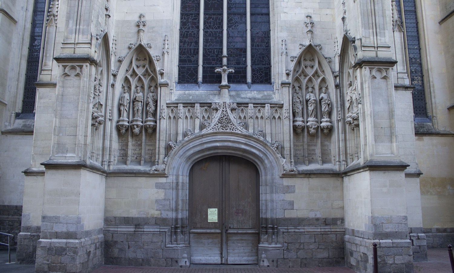 Portail du transept sud où l’on voit plusieurs statues figurant les Évangélistes, Paul de Tarse et plusieurs Apôtres.