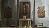 Nom : Autel de la Vierge présentant une sculpture de Vierge à l’Enfant et entouré de deux bas-reliefs en bois figurant l’Adoration des bergers et La Descente de Croix, le tout est m.XX.