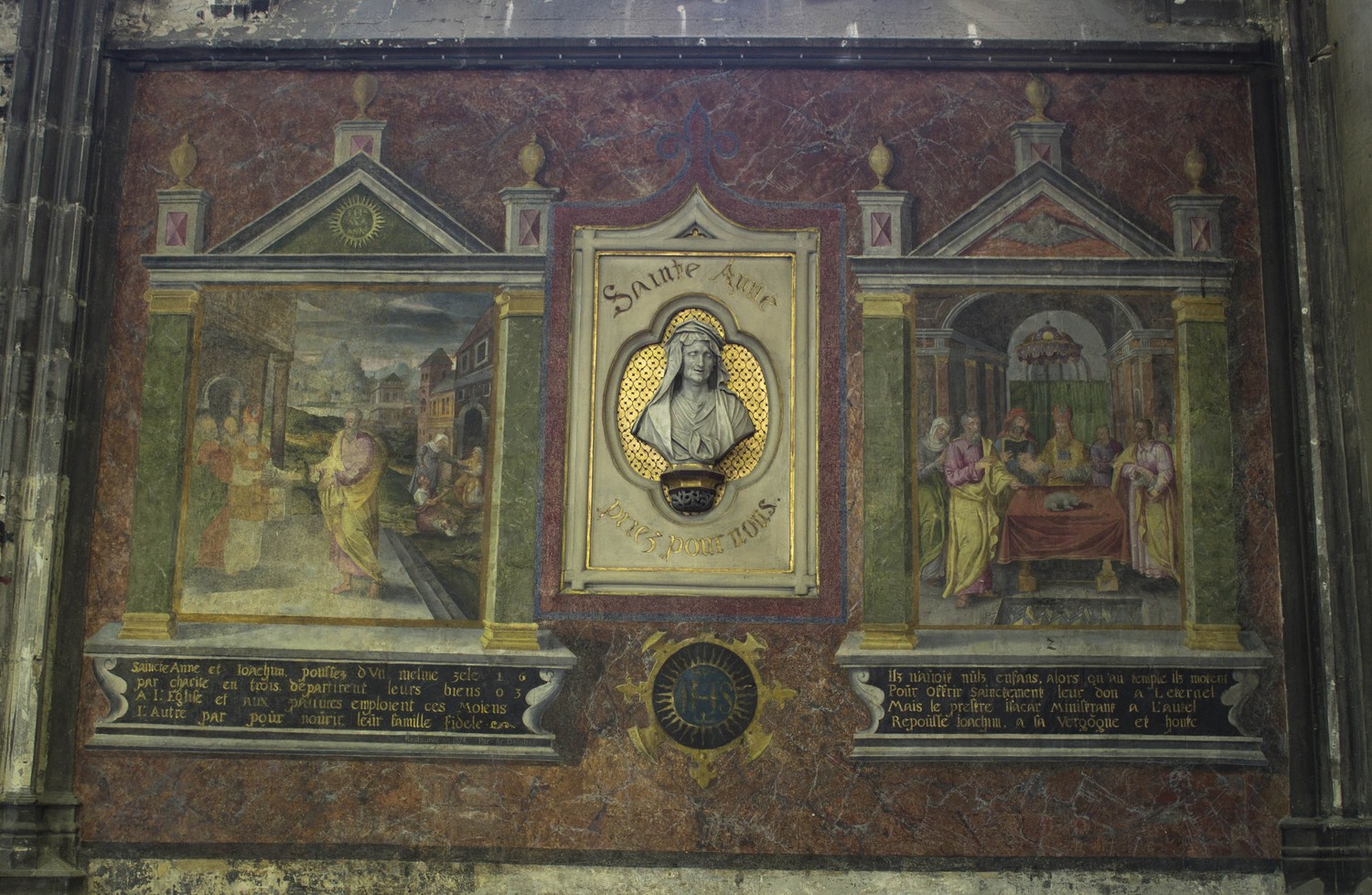 Deux peintures monumentales d. XVII représentant la Vie de sainte Anne et saint Joachim.