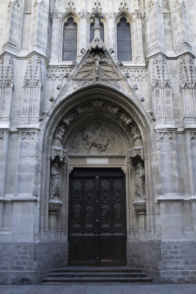 Portail de la façade occidentale figurant au tympan saint Maurice équestre.