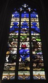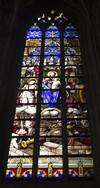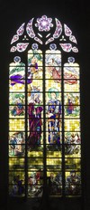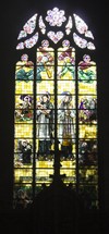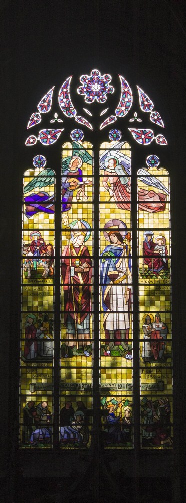 Verrières art déco du XX remplaçant les vitraux brisés par les bombardements et figurant différents saints.