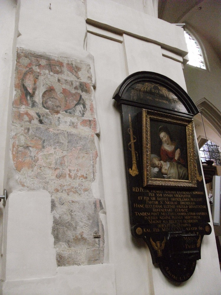 1125 : Fondation de l’église romane avec une chapelle dédié à Nicolas de Myre, saint patron des commerçant. La Grand-Place et la bourse sont en effet à deux pas. À l’époque, le marché prenait place à ses pieds et le port était non loin.