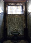 Petite chapelle baptismale surmontée de la Porte saint Jean-Baptiste et pourvue de fonts baptismaux en marbre.